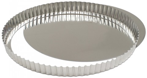 Tart Mold, 13" dia., round, fluted, removable bottom, tinned steel