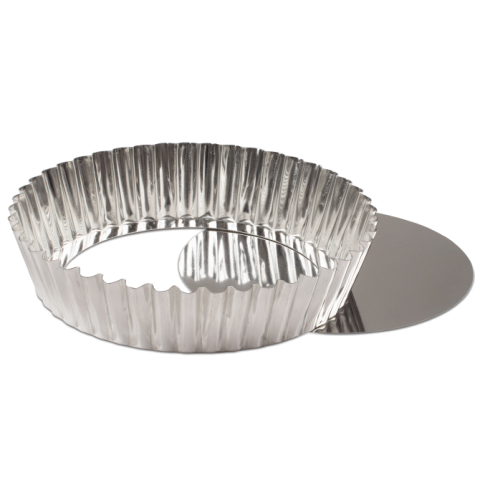 Tart Mold, 10" dia., round, fluted, removable bottom, tinned steel
