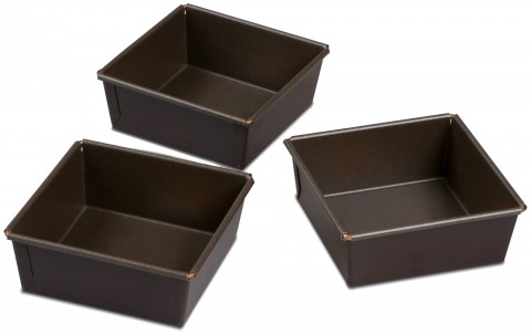 Cake Mold, 4"L x 4"W x 1-3/5"H, square, tinned steel, non-stick, brown