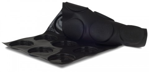 Demarle Flexipan® Mold, 23"L x 15"W, (15) florentine, 3-9/16" dia. x 5/16"H with 2 oz. capacity each, temperature range -40° to 536°F, non-stick, flexible, silicone, black, NSF