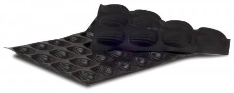 Demarle Flexipan® Mold, 23"L x 15"W, (40) madeleine, 3"L x 3/4"H with 1-1/5" oz. capacity each, temperature range -40° to 536°F, non-stick, flexible, silicone, black, NSF