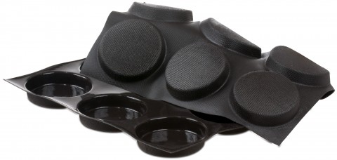 Demarle Flexipan® Mold, 23"L x 15"W, (15) shallow cake, 4" dia. x 3/4"H with 4-3/4 oz. capacity each, temperature range -40° to 536°F, non-stick, flexible, silicone, black, NSF