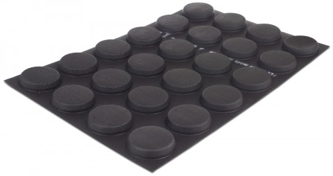 Demarle Flexipan® Mold, 23"L x 15"W, (24) shallow round, 3-1/8" dia. x 9/16"H with 2-1/5 oz. capacity each, temperature range -40° to 536°F, non-stick, flexible, silicone, black, NSF