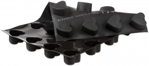 Demarle Flexipan® Mold, 23"L x 15"W, (20) heart, 2-5/8"L x 1"H with 3 oz. capacity each, temperature range -40° to 536°F, non-stick, flexible, silicone, black, NSF