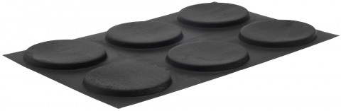Demarle Flexipan® Mold, 23"L x 15"W, (6) large round, 5-11/16" dia. x 1/2"H with 6-4/5 oz. capacity each, temperature range -40° to 536°F, non-stick, flexible, silicone, black, NSF