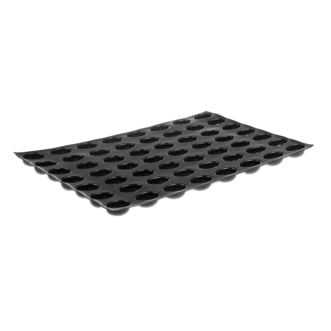 Demarle Flexipan® Mold, 23"L x 15"W, (56) mini half egg, 2-1/4" dia. x 1/2"H with 1/2 oz. capacity each, temperature range -40° to 536°F, non-stick, flexible, silicone, black, NSF