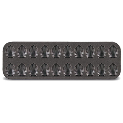 Mold, 15"L x 5"W, (20) madeleine biscuit, 1-5/8"H each, non-stick, aluminum