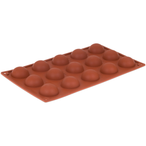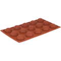 Pavoni Mold, 12"L x 7"W, (15) hemisphere, 1-9/16" dia. x 3/4"H with 9/16 oz. capacity each, temperature range -10° to +500°F, non-stick, dishwasher safe, flexible, silicone, orange