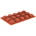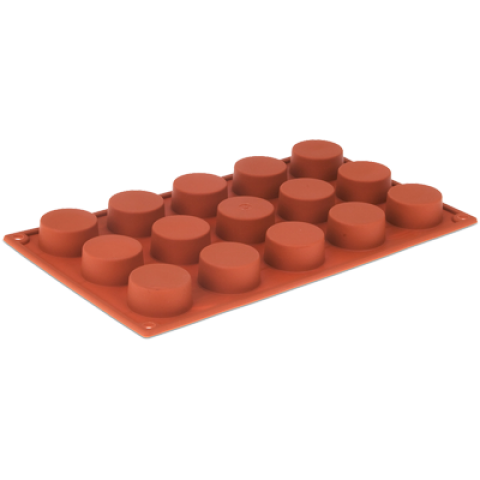 Pavoni Mold, 12"L x 7"W, (15) cylinder, 1-1/2" dia. x 3/4"H with 1/3 oz. capacity each, temperature range -10° to +500°F, non-stick, dishwasher safe, flexible, silicone, orange