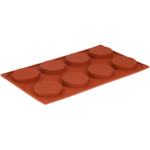 Pavoni Mold, 12"L x 7"W, (8) florentine, 2-1/3" dia. x 1/2"H with 1-1/5 oz. capacity each, temperature range -10° to +500°F, non-stick, dishwasher safe, flexible, silicone, orange