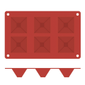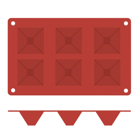 Pavoni Mold, 12"L x 7"W, (6) pyramid, 2-3/4"L x 1-1/2"H with 2-1/2 oz. capacity each, temperature range -10° to +500°F, non-stick, dishwasher safe, flexible, silicone, orange