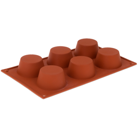 Pavoni Mold, 12"L x 7"W, (6) muffin, 2-3/4" dia. x 1-1/3"H with 3 oz. capacity each, temperature range -10° to +500°F, non-stick, dishwasher safe, flexible, silicone, orange