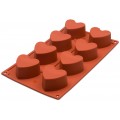 Pavoni Mold, 12"L x 7"W, (8) heart, 2-1/2"W x 1-1/3"H with 2 oz. capacity each, temperature range -10° to +500°F, non-stick, dishwasher safe, flexible, silicone, orange