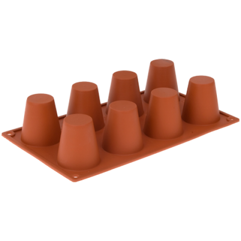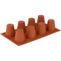 Pavoni Mold, 12"L x 7"W, (8) large timbale, 2-1/4" dia. x 2-1/3"H with 4 oz. capacity each, temperature range -10° to +500°F, non-stick, dishwasher safe, flexible, silicone, orange