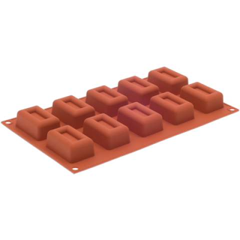 Pavoni Mold, 12"L x 7"W, (10) rectangle savarin, 2-2/5"L x 1-9/16"W x 1"H with 1-1/2 oz. capacity each, temperature range -10° to +500°F, non-stick, dishwasher safe, flexible, silicone, orange