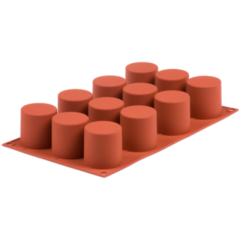 Silikomart Mold, 12"L x 7"W, (12) tall cylinder, 1-9/10" dia. x 1-9/10"H with 3 oz. capacity each, temperature range -10° to +500°F, non-stick, dishwasher safe, flexible, silicone, orange