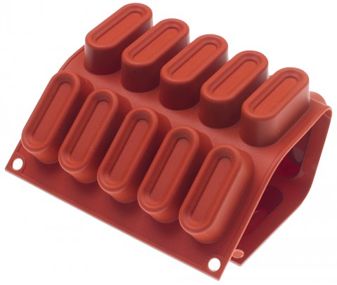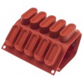 Silikomart Mold, 12"L x 7"W, (20) oval, with indent, 2-3/8"L x 15/16"H with 9/10 oz. capacity each, temperature range -10° to +500°F, non-stick, dishwasher safe, flexible, silicone, orange
