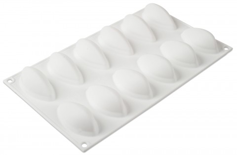 Silikomart Mold, 12"L x 7"W, (12) quenelle, 2-1/2"L x 1-1/10"H with 4/5 oz. capacity each, temperature range -76 to 446°F, dishwasher safe, non-stick, flexible, silicone, white