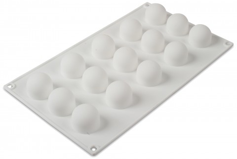Silikomart Mold, 11-3/4"L x 6-3/4"W, (15) mini truffle, 1-1/4" dia. x 15/16"H with 11/16 oz. capacity each, temperature range -76 to 446°F, non-stick, dishwasher safe, flexible, silicone, white