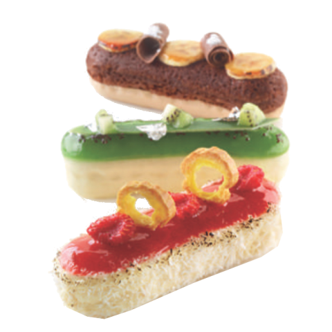 Eclair Mold, 12" x 7" overall, makes (6) 5" eclairs, flexible, non-stick, silicone, white