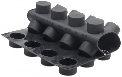 Pavoni Pavoflex Mold, 23-1/2"L x 15-3/4"W, (24) cilindro, 2-1/2" dia. x 1-3/5"H with 4-11/16 oz. capacity each, temperature range -40 to 536°F, non-stick, flexible, silicone, black