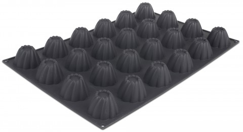 Pavoni Pavoflex Mold, 23-1/2"L x 15-3/4"W, (24) tapered charlotte, 3" dia. x 1-7/8"H with 4 oz. capacity each, temperature range -40 to 536°F, non-stick, flexible, silicone, black