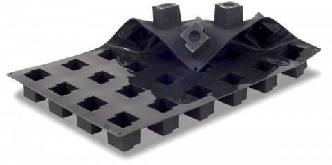 Pavoni Pavoflex Mold, 23-1/2"L x 15-3/4"W, (24) offset cube, with indent, 2-1/4"L x 2"W with 3-7/8 oz. capacity each, temperature range -40 to 536°F, non-stick, flexible, silicone, black