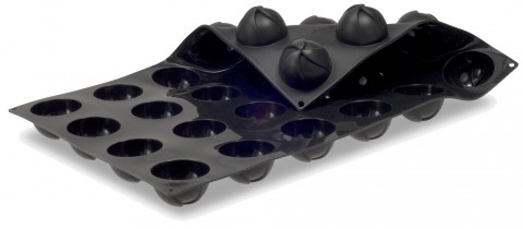 Pavoni Pavoflex Mold, 23-1/2"L x 15-3/4"W, (24) swirl dome, 2-3/4"L x 1-3/4"H with 3-3/4 oz. capacity each, temperature range -40 to 536°F, non-stick, flexible, silicone, black