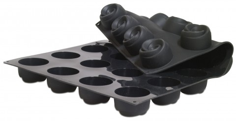 Pavoni Pavoflex Mold, 23-1/2"L x 15-3/4"W, (24) rosette, 1-3/8" dia. x 1-3/8"H with 7/8 oz. capacity each, temperature range -40 to 536°F, non-stick, flexible, silicone, black