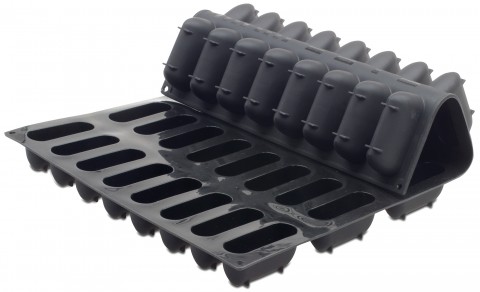 Pavoni Pavoflex Mold, 23-1/2"L x 15-3/4"W, (40) gianduiottos, 3-9/16"L x 1-3/16"H with 2-4/5 oz. capacity each, temperature range -40 to 536°F, non-stick, flexible, silicone, black