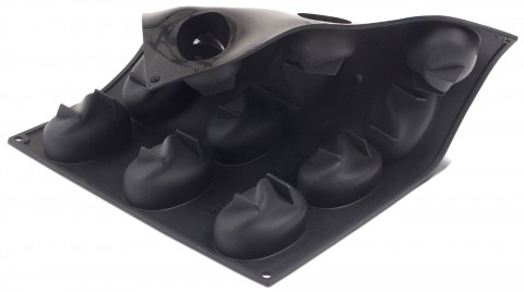 Pavoni Pavoflex Mold, 16"L x 12"W, (12 ) curvy, 3-1/4"L x 2"W x 1-5/8"H with 3 oz. capacity each, temperature range -40 to 536°F, non-stick, flexible, silicone, black