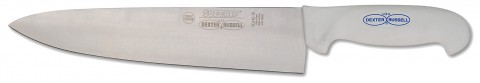 Dexter Russell Chef's Knife 10", stamped, high carbon stainless steel, rubber handle, white, Made in USA, NSF