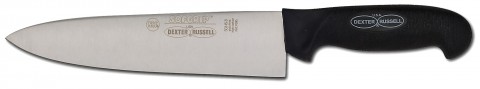 Dexter Russell Chef's Knife 8", stamped, high carbon stainless steel, rubber handle, black, Made in USA, NSF