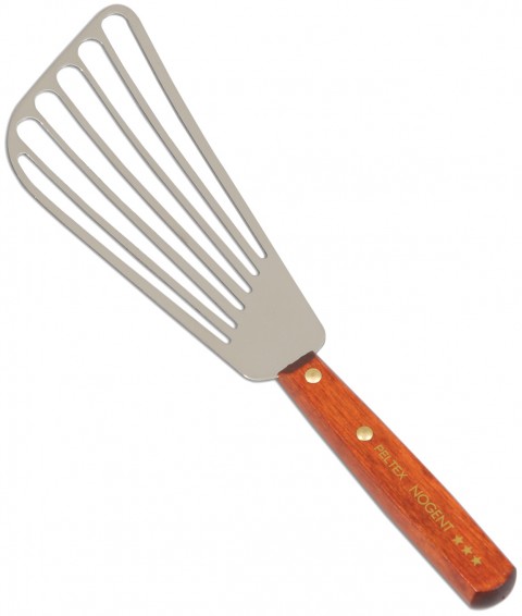 Peltex Spatula, 11", slotted, stainless steel, wood handle, Made in France