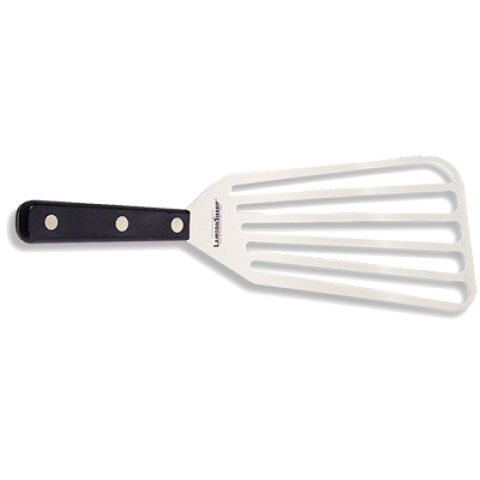 Turner, 9"L x 4"W, slotted, stainless steel blade, wood handle, black