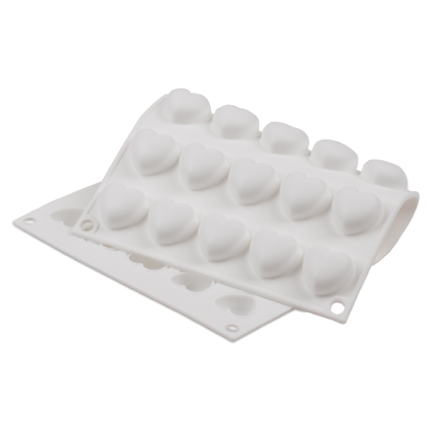 Micro Flex Mold, 11-3/4" x 7" overall, makes (35) 1" hearts, dishwasher/oven/freezer safe, flexible, silicone, white