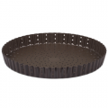 Tart Mold, fluted, non-stick, 9.5in (240mm) dia., perforated, round, cast iron, black