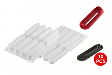 Silikomart L Eclair 120 Silicone Mold, with cutter, 8 indents, Made in Italy