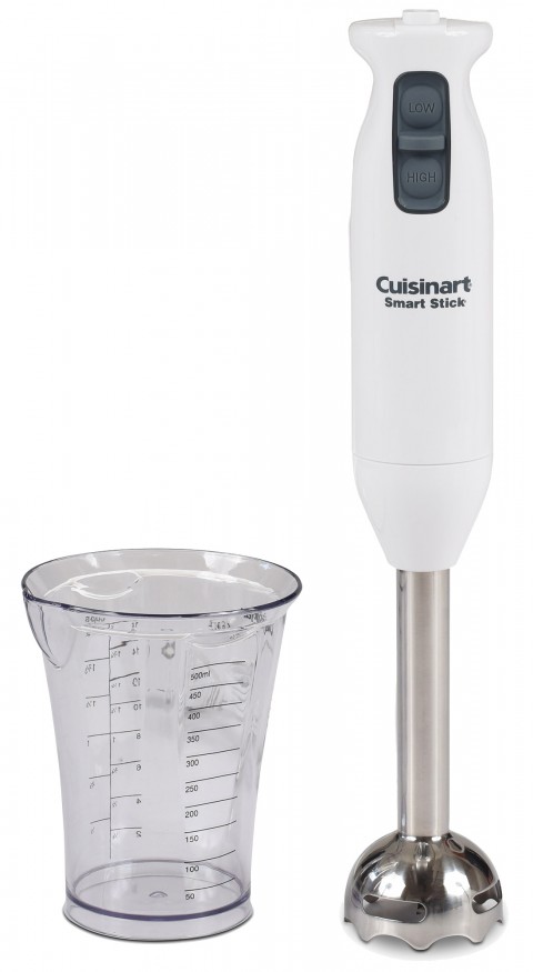 Cuisinart Immersion Blender, 15-3/4"L overall, 6"L shaft, mini sized, (2) speeds, includes (1) 16 oz., beaker, stainless steel, white, 110v/60, 200 watts, UL listing
