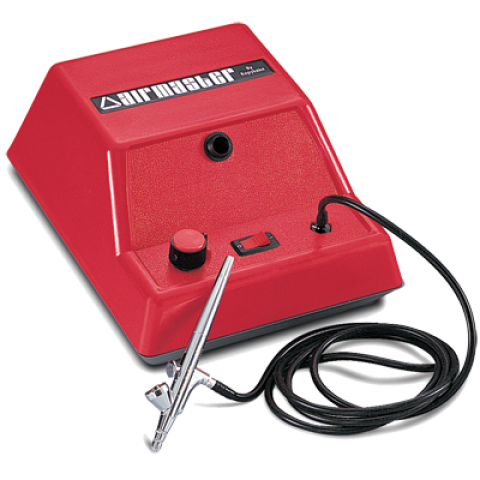 Kopycake Airmaster Airbrush, 9-1/2"L x 7-1/2"W x 5"H, adjustable air pressure 0-30 PSI, plastic and nickel plated brass, red, 1/10 hp, 110/120v/60, 1.2 amp