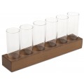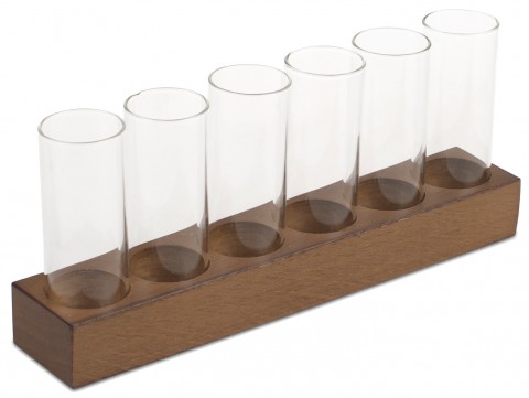Cocktail Server, 9-1/2"L x 2"W x 3-1/4"H overall, (6) cavities holds (6) 2.25 oz., column glass, wood, brown