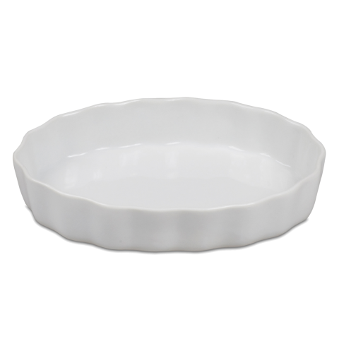 Dish, 8 oz., 6" x 4-1/4", oval, fluted, porcelain, white (4 per pack)