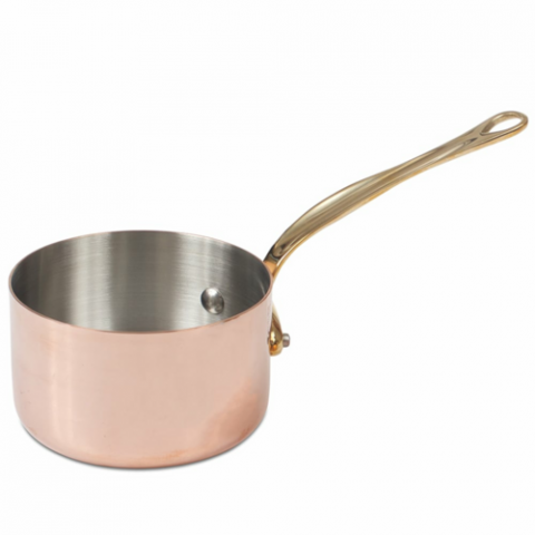 Mauviel Sauce Pan, 4.75" dia., 10 oz., round, gas/electric/halogen/oven safe, 1.5mm, 18/10 stainless steel interior, bi-laminated Copper exterior, polished finished, Made in France