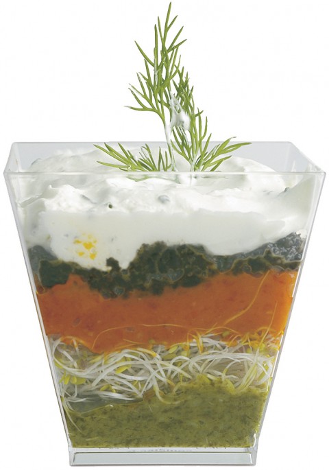 Comatec Disposable Kova Dish, 7 oz., 2-4/5" x 2-3/4"H, square, large, geometric, plastic, transparent (400 per pack)