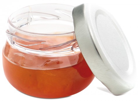 Comatec Disposable Mini Jam Pot, 1 oz., 1-3/4" dia. x 1-1/3"H, with metal screw-top lid, plastic, transparent (200 per pack)