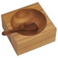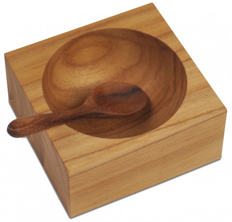 Salt Cellar, 2-3/4"L x 2-3/4"W x 1-1/2"H, square, includes 3-1/4"L spoon, biodegradable, wood, teak