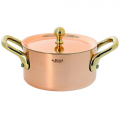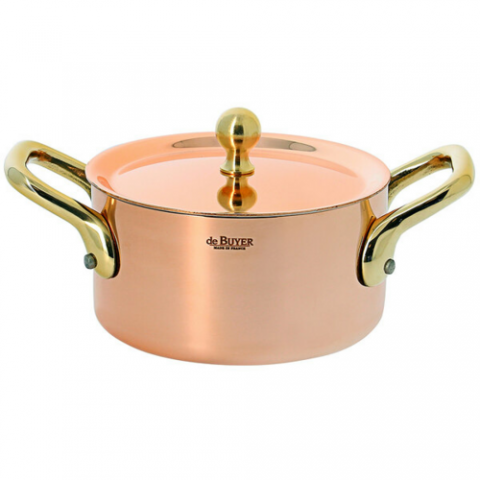 De Buyer Copper Stewpan, 3.5"dia, brass handle, with lid, High-end mirror polishing