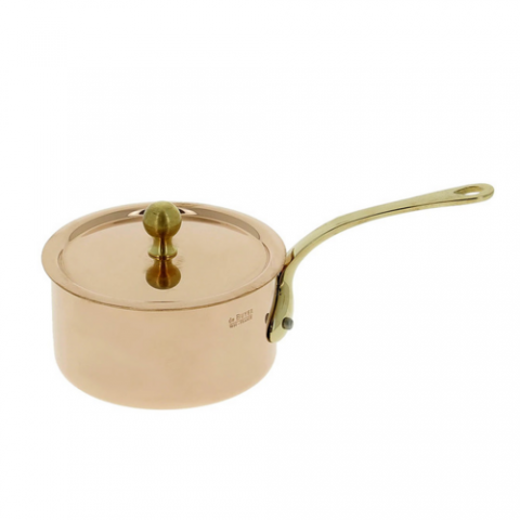 De Buyer Copper Saucepan, 3.5"dia, brass long handle, with lid, High-end mirror polishing