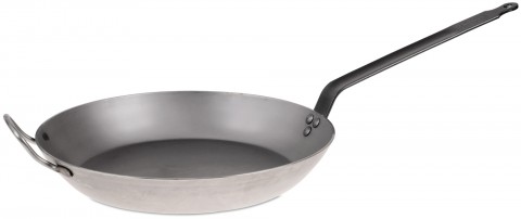 De Buyer Fry Pan, 14" dia., riveted offset handle, carbon steel