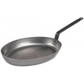 De Buyer Fry Pan, 14" x 10-1/2", oval, riveted offset handle, carbon steel